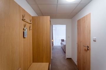Apartmánové pokoje s nadstandardním prostorem, dostatečně pohodlné pro ubytování celé rodiny a s plně vybaveným kuchyňským koutem.
