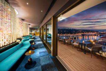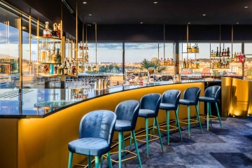 Die Atmosphäre, der Stil und die Aussicht! Entdecken Sie unsere brandneue Skybar im 6. Stock mit atemberaubendem Panoramablick über die Stadt.