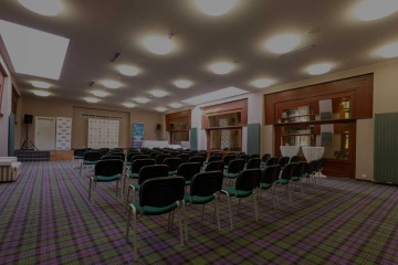 The modern conference MARSHALL HALL is able to accommodate up to 100 participants, with a variable layout according to your needs. The conference hall was created by placing a roof over the atrium; therefore, there is a lot of daylight and very natural atmosphere is created during the events.