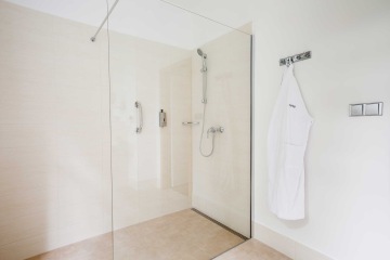 - bathroom with shower, cosmetic mirror & hairdryer